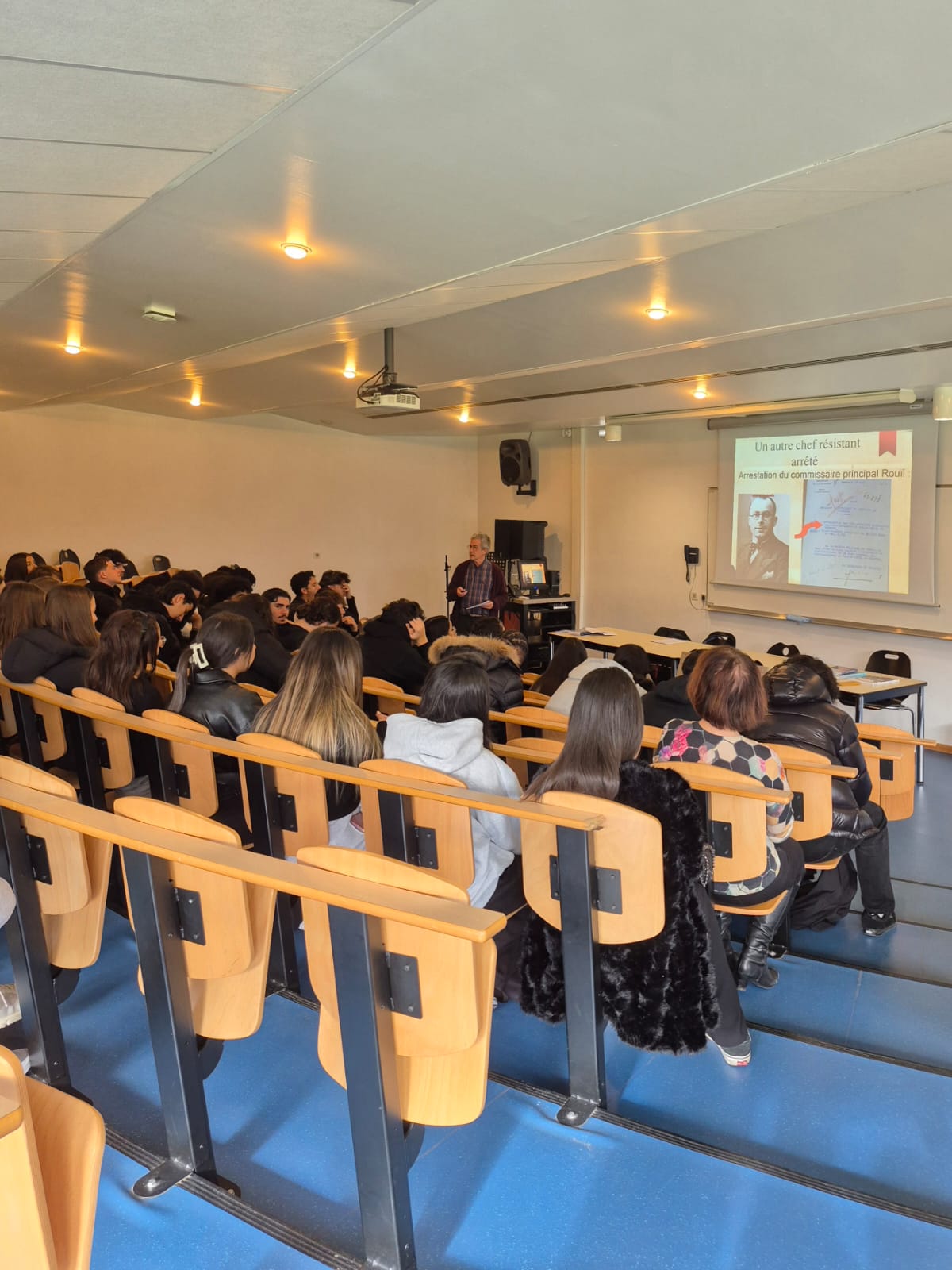 - Arcachon, 1er octobre : Présentation dans l’amphi du MA.AT,, à l’invitation de l’Association Interculturelle d’Arcachon. Devant un amphi de 80 personnes. Rencontre émouvante entre le fils de Léo Coudin et la fille d’Henri Portes. Leurs pères policiers républicains chérissaient les valeurs que les nazis piétinaient.